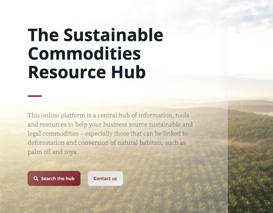 Esta plataforma en línea es un centro de información, herramientas y recursos para ayudar a su empresa a abastecerse de materias primas sostenibles y legales, especialmente aquellas que pueden vincularse con la deforestación y la conversión de hábitats naturales, como el aceite de palma y la soja.