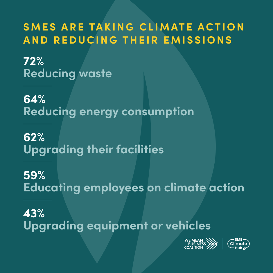 The survey findings made clear that taking climate action isn’t just good for the planet, it is good for business. Over 60% of surveyed SMEs enhanced their business reputation thanks to their climate efforts. This led to nearly 40% of SMEs meeting customer expectations and 30% winning new customers.