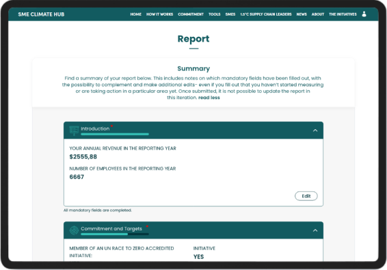 La herramienta de informes para pymes permite a las pymes comprometidas crear informes sobre sus emisiones